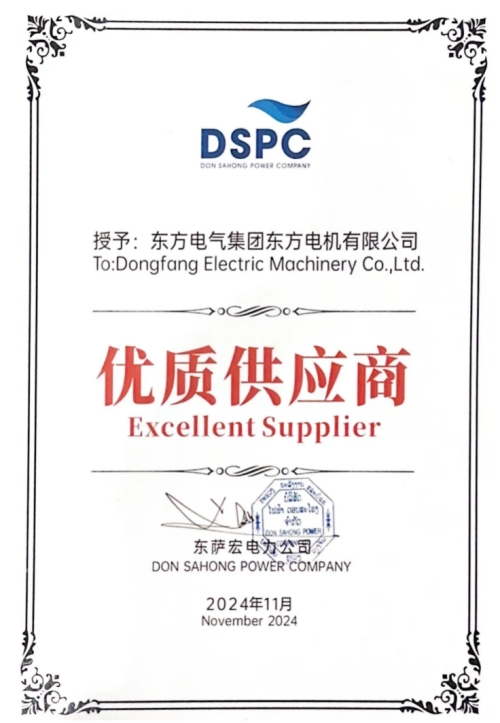 东方电机获得“优质供应商”证书