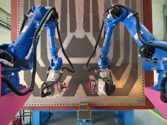 ▲东方汽轮机绿色高效焊接数字化车间-凝汽器管孔自动焊设备